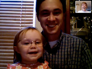 Can you find daddy's glasses? We had fun chatting tonight on the computer with Grandma Judy.