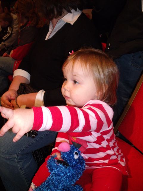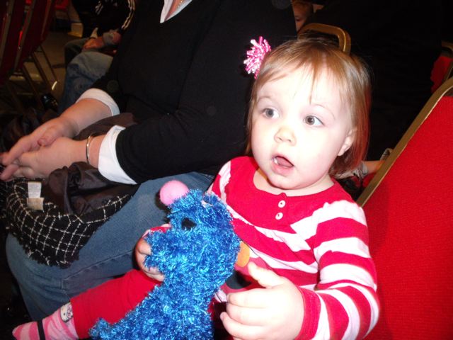Can you tell me how to get, how to get to Sesame Street? Sesame Street Live came to Dubuque, Iowa on the day before Thanksgiving. It was AWESOME! Addilyn kept saying, "Hi, Elmo!" "Hi, Abby!" "Hi, Cookie!" She has talked about it ever since. The look in her eyes when the characters first came out was worth the price of admission!