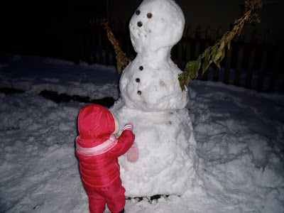 We made a snowman! He is as tall as daddy (but much cuter)!