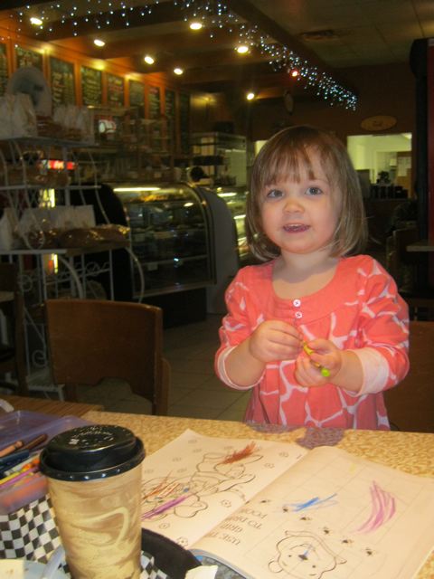 Addilyn and Daddy went to the Blue Strawberry Coffee Co. in Cedar Rapids this morning for coffee and cinnamon rolls. We had some father-daughter bonding time, and ate an awesome breakfast. The girls also received some early Christmas gifts today from a friend of Grammy. We had a great weekend! Now, we're looking forward to Turkey Day!!!