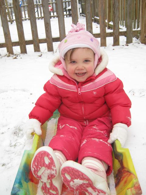 It's not winter in Iowa without some sledding! We started at Roosevelt School in Cedar Rapids - the home of the steepest hill in town. It was certainly too steep for Addilyn, but daddy gave it a shot. Apparently, the hill funnels to one point, and no matter which direction you try, you always seem to hit the tiny ramp at the bottom. This ramp sent daddy flying in mid air, and left him with a few bumps and bruises... but Addilyn got a laugh out of it! We finished the day off at Jones Park and played on the snowy playground and sledded some more. Finally, we came home to some hot chocolate with marshmallows! Winter in Iowa can be so much fun.