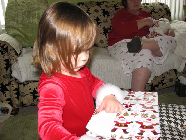 On Christmas Eve, we went to Grandma Judy and Grandpa Bruce's house. Santa left lots of goodies there, too!