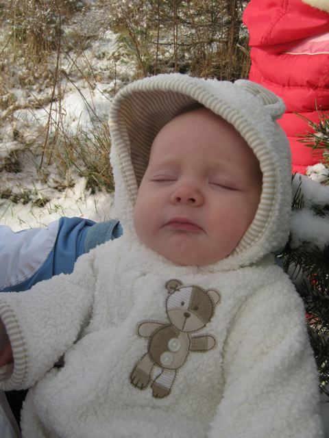 Daddy only has one rule when it comes to cutting down the Christmas Tree. It has to SNOW first! Guess what... last night, we received our first snow of the year. Off we went to Kirby's Christmas Tree Farm in Toddville, Iowa. What a fantastic place. We look forward to it for months every year. The snow was beautiful, the sun was shining, making sparkly glitter all of the ground and trees. Before we left, daddy told Addilyn how the process works. We get all bundled up in our coat, hat, gloves, mittens, and boots; we drive to Toddville, Iowa; we get a saw; we pick out our tree; we cut it down; we drag it back to the car; we pay for our tree; and BEST OF ALL - we eat homemade cookies and hot chocolate. This place is so great. They even had wonderful, friendly Iowans who held our little Stella as she slept while we drank our hot chocolate. Tonight we're off to the Fire and Ice Parade, and tomorrow it's Disney on Ice!