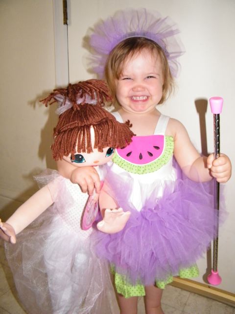 Say cheese! Thanks, grammy for the tutu, baton, watermelon dress, and princess doll.