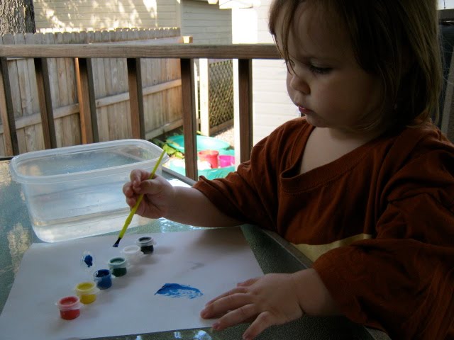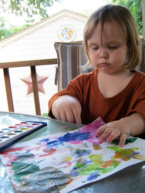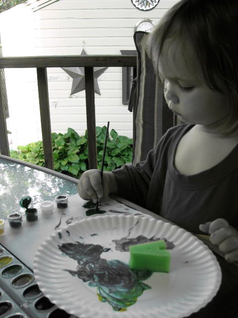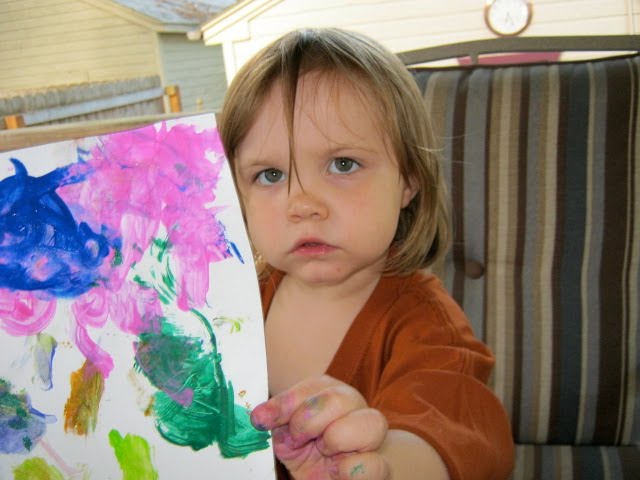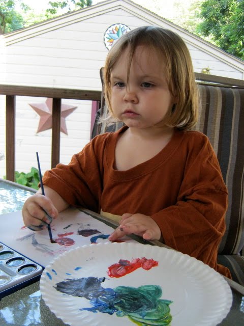 We painted a picture tonight on the back porch. What a beautiful night for an artist to work on her painting skills. The finished product turned out very pretty. It made it on the (overcrowded) refrigerator!