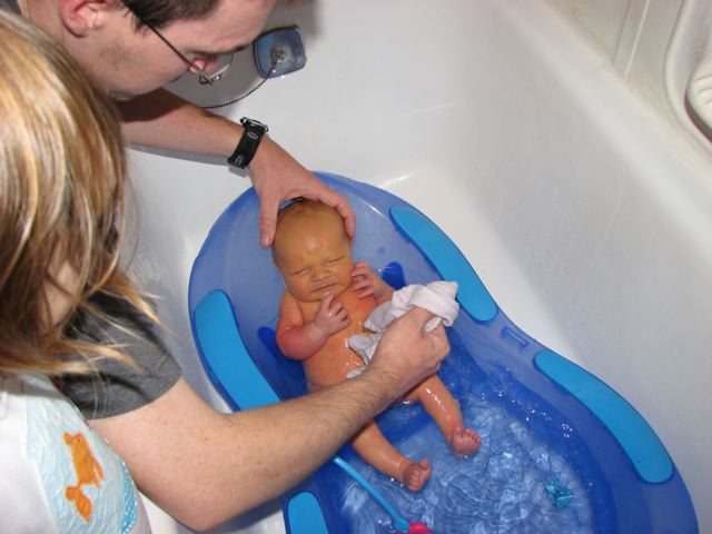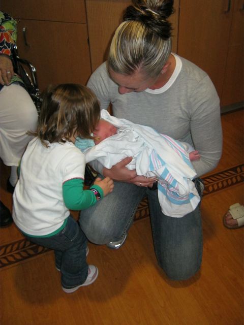 Stella is 2 weeks old, and we have all settled down amazingly well.  Stella is sleeping 3-4 hours at a time at night!  Mommy only has to get up once at night for a midnight-1:00 feeding.  Addilyn is very gentle with her little sister, and she is beginning to understand the new dynamics at home.  Even though Addilyn and Stella look very similar at the same age (2 weeks), they have very different personalities.  Stella is much more content and happy to be sleeping in her pack and play -- something Addilyn was never happy doing.  Stella also prefers mommy right now, and Addilyn is daddy's buddy.  It is an exciting time to watch the girls grow up.  They both change so much every day!  It's so much fun being a parent... especially when the girls get along so well.  Ask me again when the girls are teenagers, but for now, we are enjoying every minute!