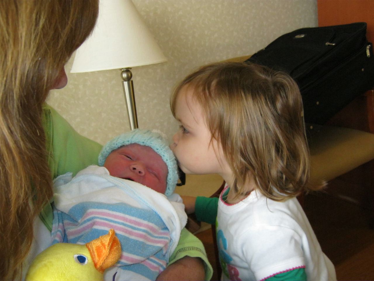 Introducing our healthy and beautiful daughter Stella Juliet Gall. She was born 9/16/10 at 1:32pm, weighed a very healthy 8 lbs. 6.5 oz., and was 20 1/2 inches long. She has beautiful blue eyes, brown hair with hints of blonde and red, and is a very content baby. She is very alert and curious about the world, just like her big sister! Words cannot explain the joy we feel in bringing another new life into the world. Addilyn loves her so much already. Addilyn's first words to her big sister were, "She's SO CUTE!" Addilyn then proceeded to look out the window of the hospital and exclaim, "There's the Hawkeye Game!" (see the video below). She's a big sister and a Herky girl at heart. We can't wait to begin our lives as a family of 4.