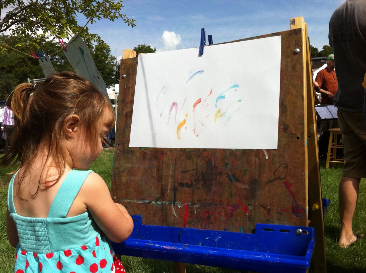 Over the weekend, we enjoyed the beautiful weather in the Mason and East Lansing area. We started the day off on Sunday by attending a new church in Mason. It is a very welcoming and inviting church, with a great priest from Fiji. He seems to be entertaining and gives you a take home story to think about -- something we have been lacking in churches so far. We then went to Tim Horton's ~ a donut and coffee shop started in Canada. I suppose we're not too far from Canada, so that makes some sense. Tim Horton was a hockey player for the Toronto Maple Leafs. I'm not sure how that translates into donuts, but they were good! And so was the coffee! We then went to the East Lansing Farmer's Market, enjoyed some more Michigan peaches and apples, played on the playground (mosquito free!), and Addilyn enjoyed painting a masterpiece. It was a great weekend settling in to our new home. Next week we hope to catch a movie at the $2.00 seats. Addilyn and Stella want to see Winnie the Pooh.